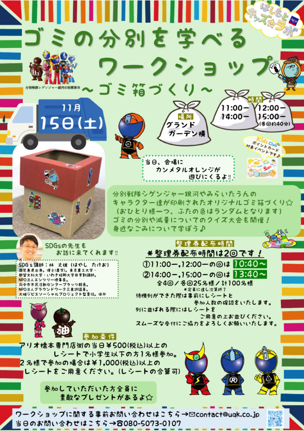 当日、アリオ橋本専門店街でのお買い上げレシート(税込500円以上)をご提示で、どなたでもご参加できます。