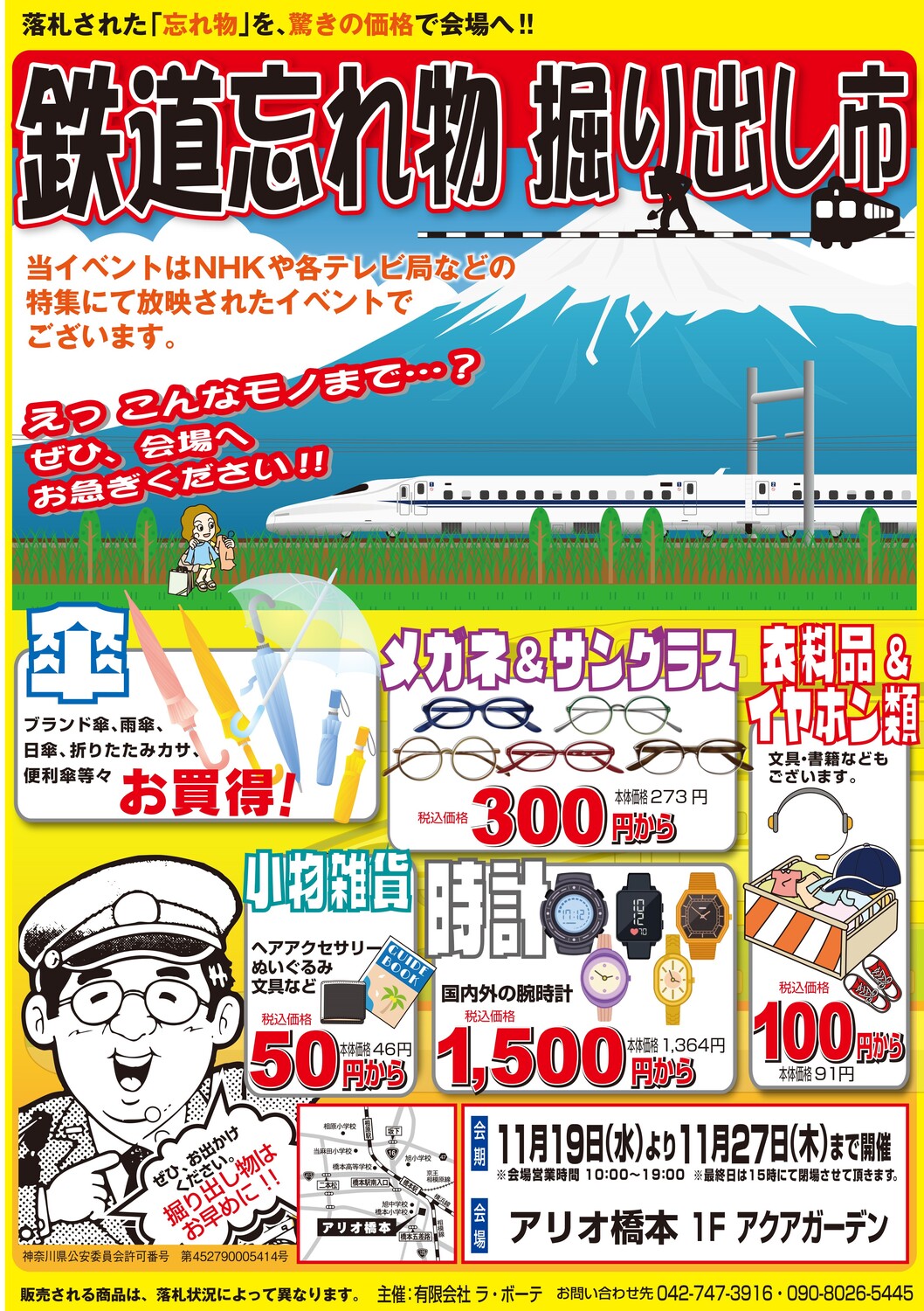 入札などにより落札された電車の中での忘れ物を、クリーニングや消毒、更には修理を施し、お手頃価格にてご提供いたします。