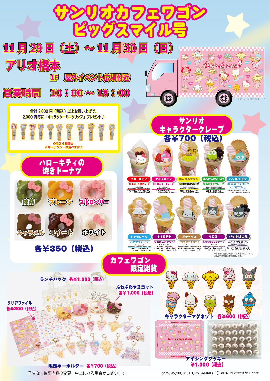 サンリオカフェワゴン「ビッグスマイル号」が、アリオ橋本に久しぶりに登場します♪