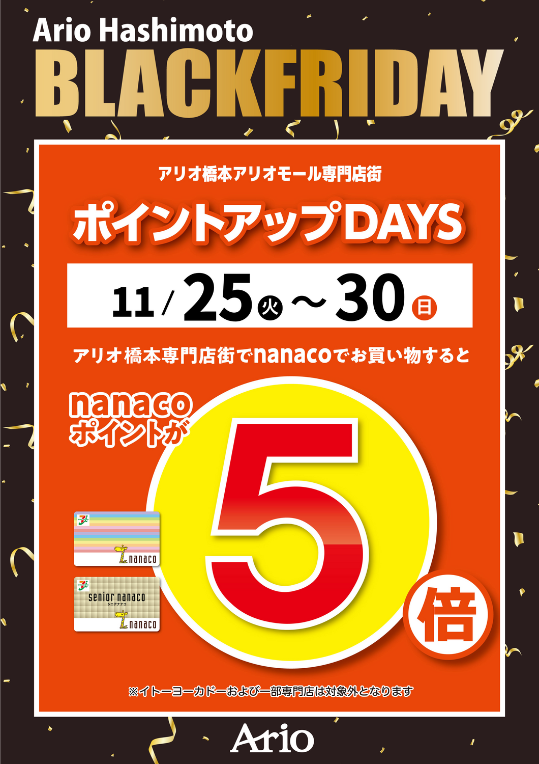 アリオ橋本アリオモール専門店街 特別企画 ポイントアップDAYS