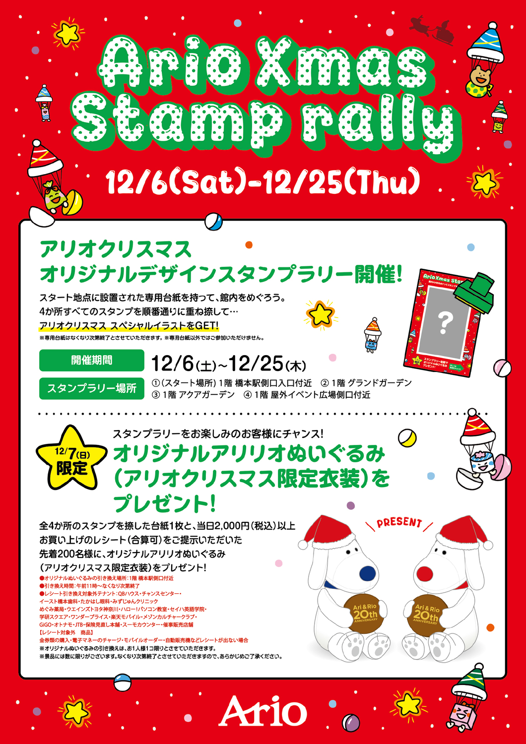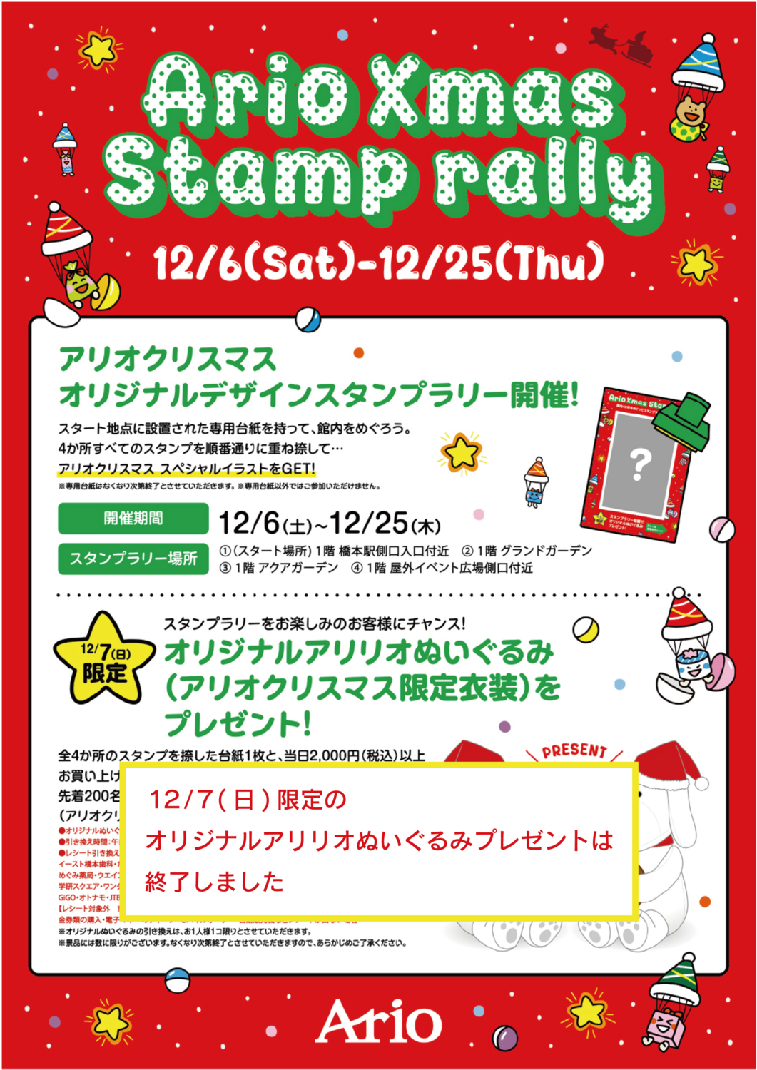 アリオクリスマス オリジナルデザインスタンプラリー開催!