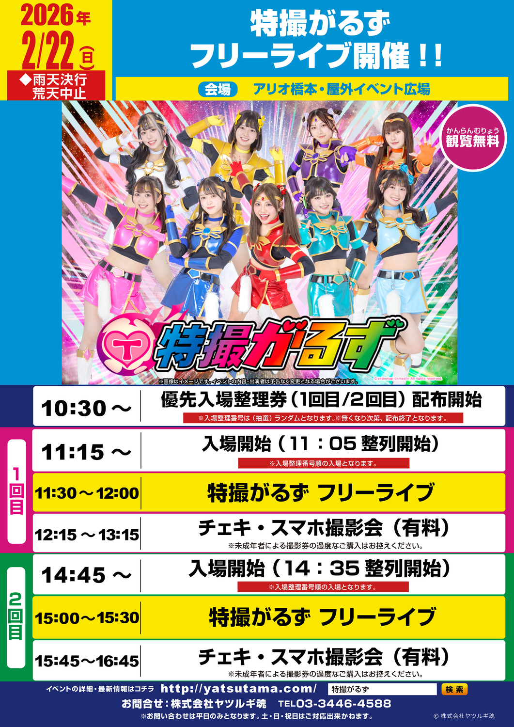 10:30~ 優先入場整理券(1回目/2回目) 配布開始
