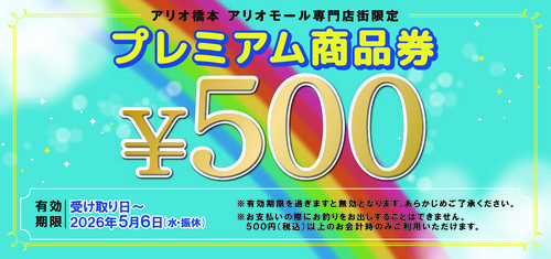 アリオ橋本アリオモール専門店街での1回のお買い上げ金額に応じて抽選券を配布!