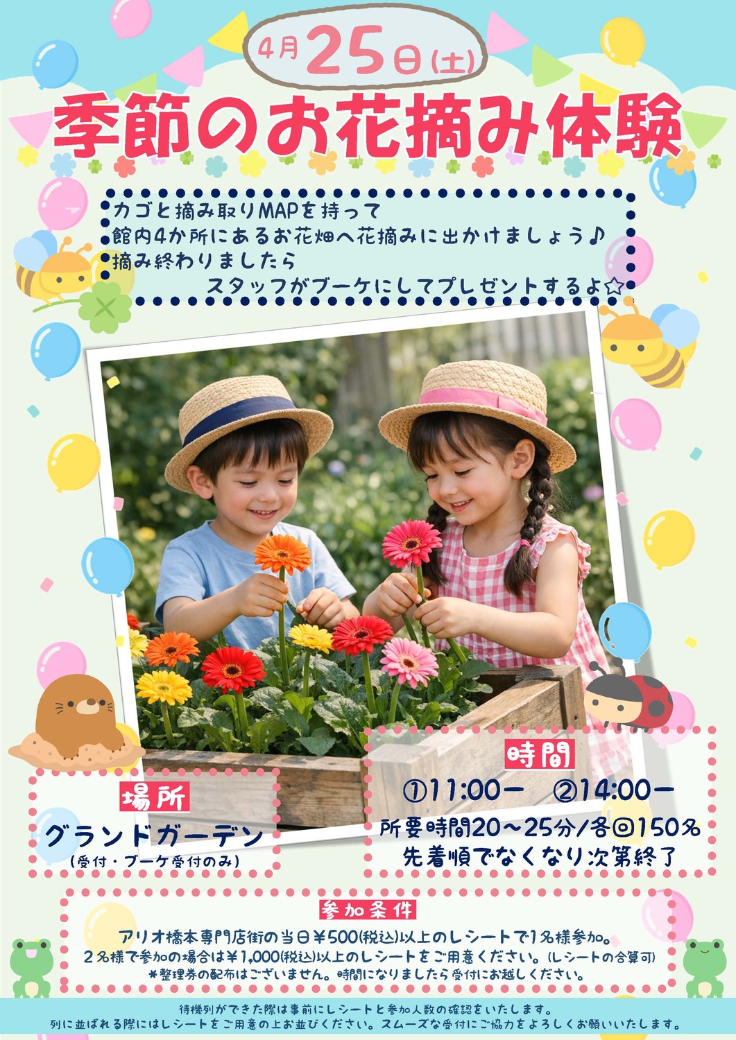 館内4か所にあるお花畑へ花摘みに出かけましょう♪