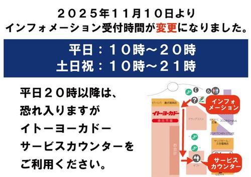 2025年11月10日(月)よりインフォメーション受付時間が変更になりました。