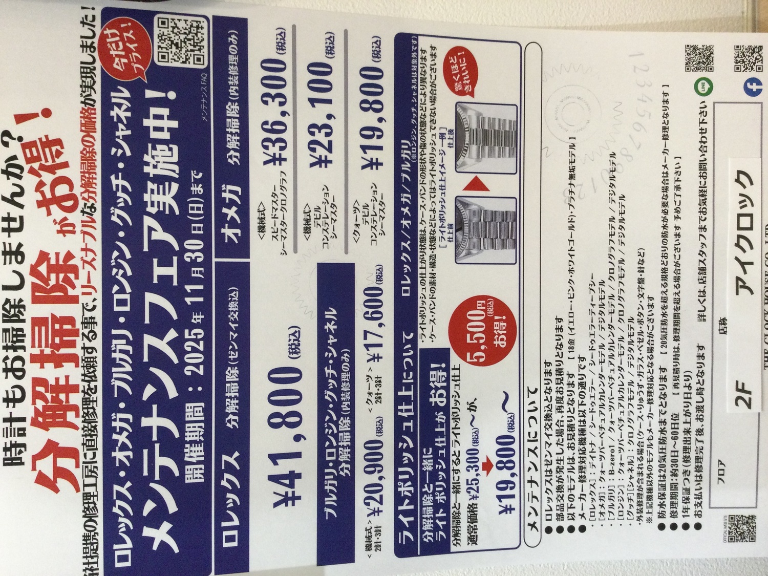 また、その他海外ブランドの分解掃除も多数承っていますのでお気軽に当店スタッフまでお問い合わせ下さい!