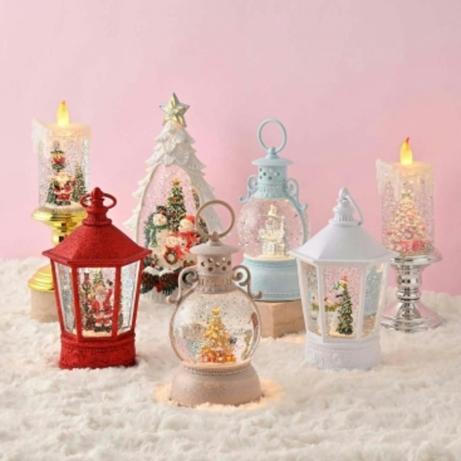 キャンドルやツリーなど、ドーム型でない様々な形のスノードーム⛄