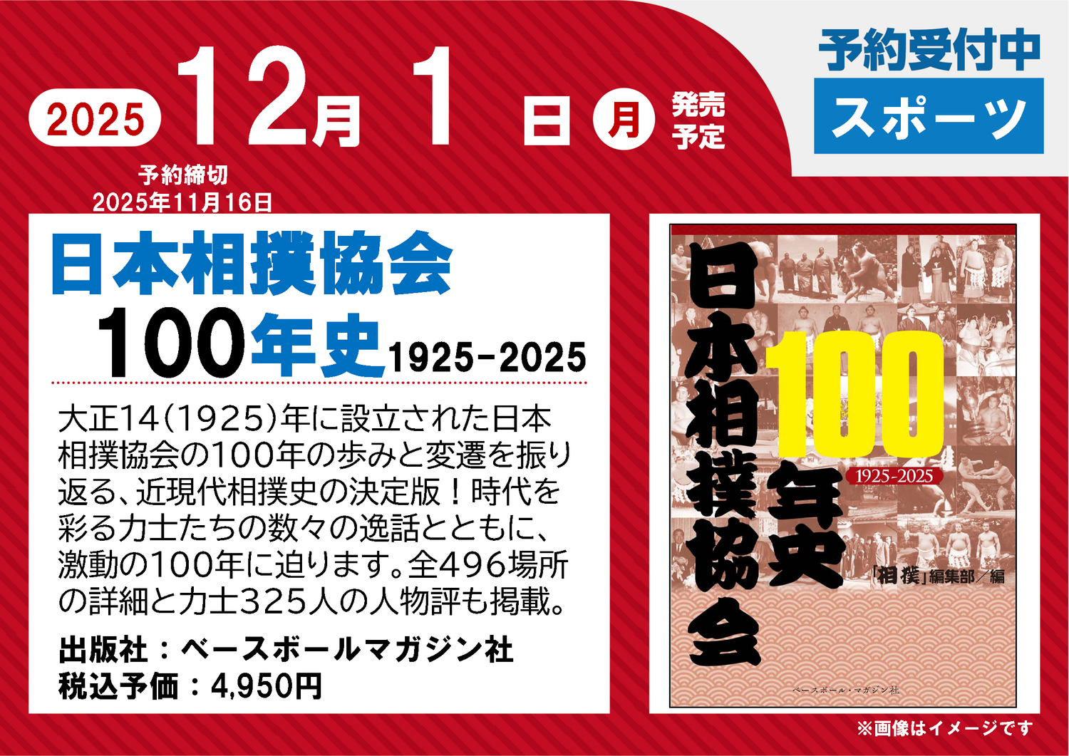 【予約情報】12/1発売予定「日本相撲協会100年史」【締切:11/16】