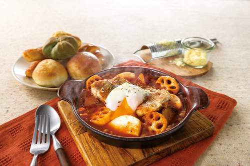 ●グリルチキンと根菜のトマトビネガー煮 ビスマルク風