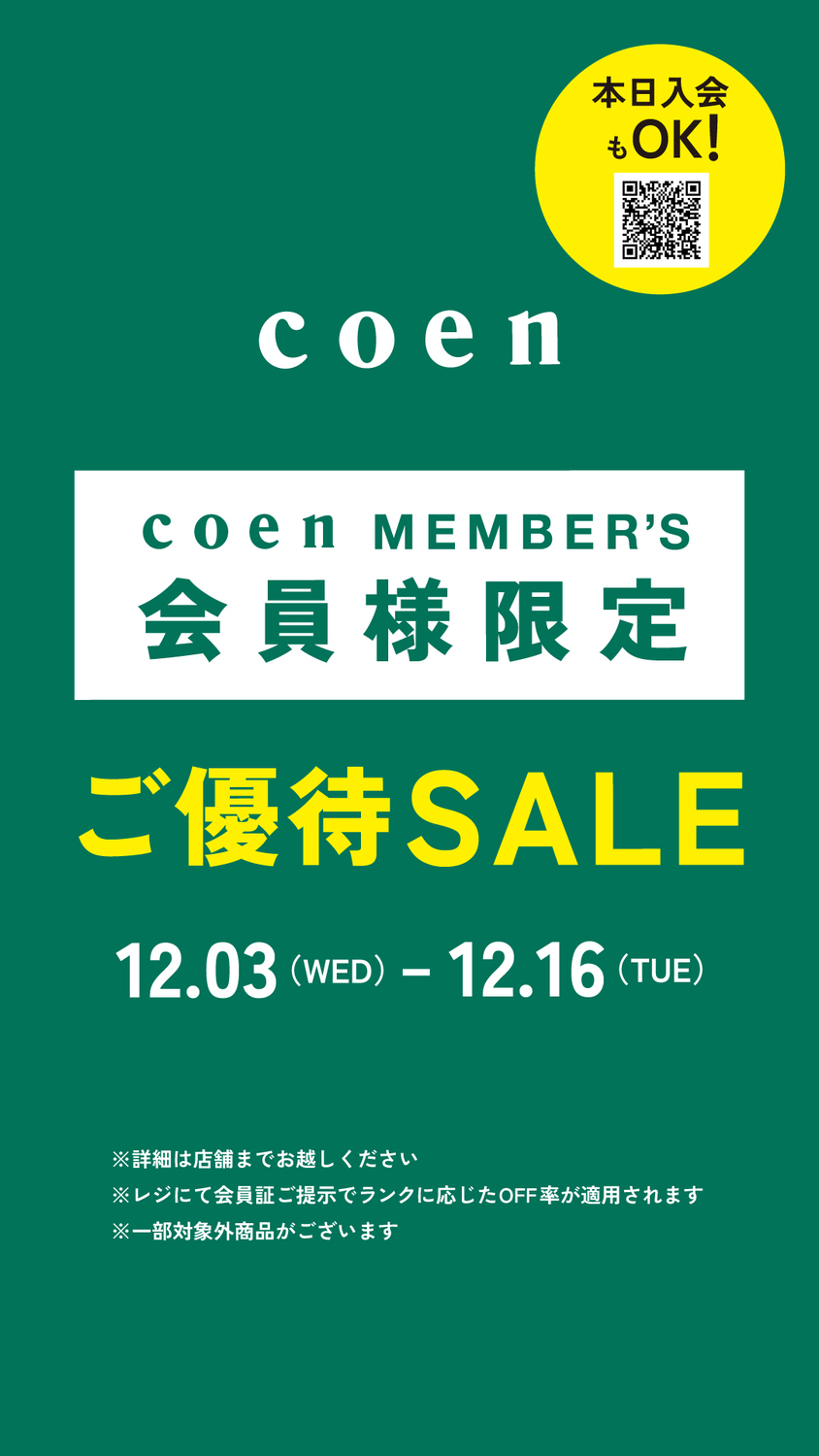 COEN 会員様限定、ご優待SALE 開催いたします!!