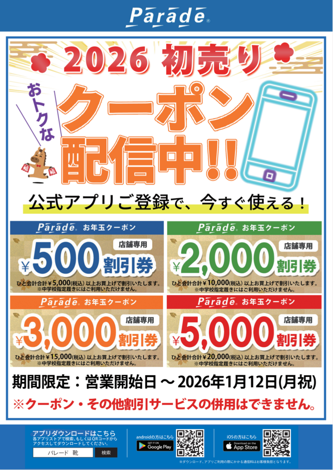 只今 Paradeアリオ橋本店ではお得な初売りアプリクーポン配信中!