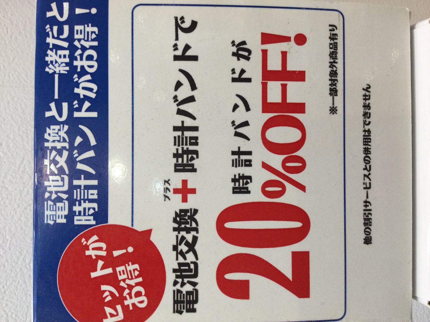 電池交換+時計バンドで時計バンドが20%OFF!
