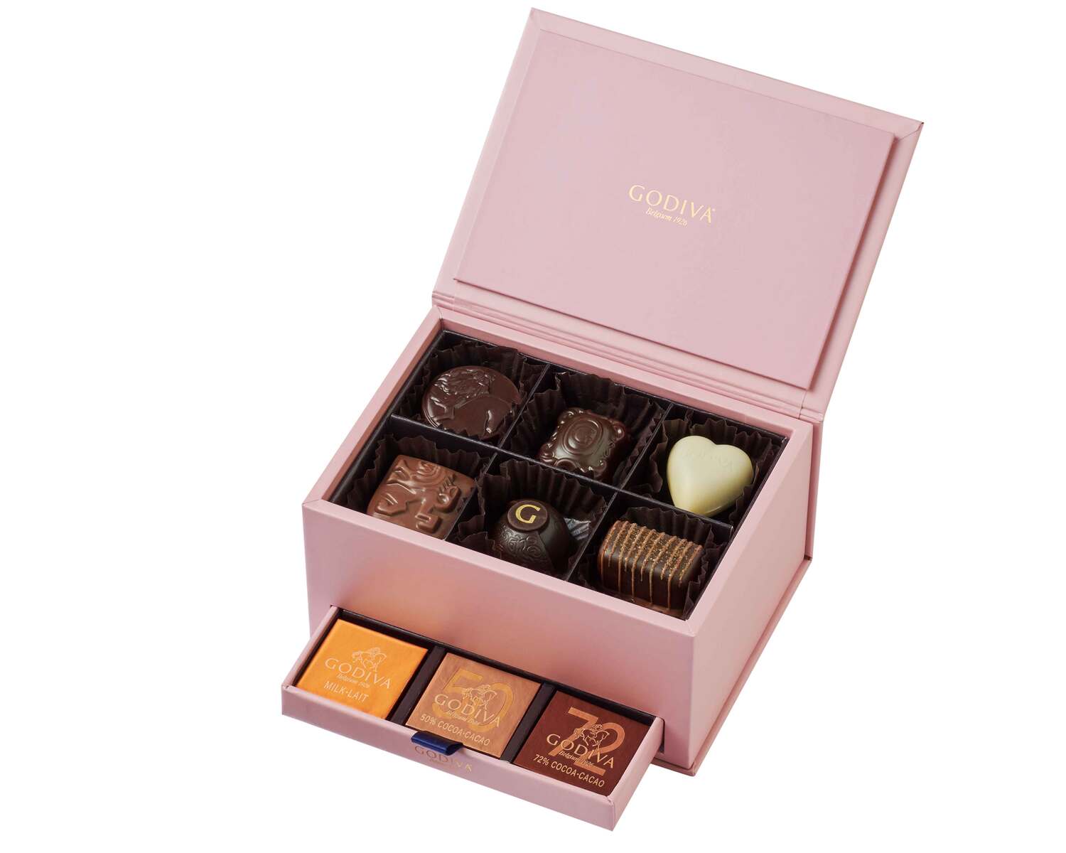 100周年を迎えるゴディバが送り出す、ベルギー王室御用達として伝統の継承と共に革新を重ねてきた100年のアーカイブショコラコレクション。時代を超えて愛され続けるチョコレートから100周年記念粒までに人気のカレを加えて、シックで華麗なパッケージに詰め合わせました。これまでの軌跡と未来に想いを馳せて、驚きと喜びを運ぶ"遊び心"を込めたチョコレートと共に、100年の歴史を巡る旅をお楽しみください。
