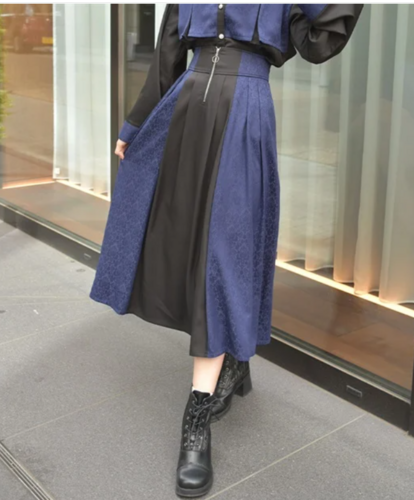 ジャカード素材が高級感とオリエンタルな美しさを漂わせ、異素材の切替が奥行きのある表情を生み出します!