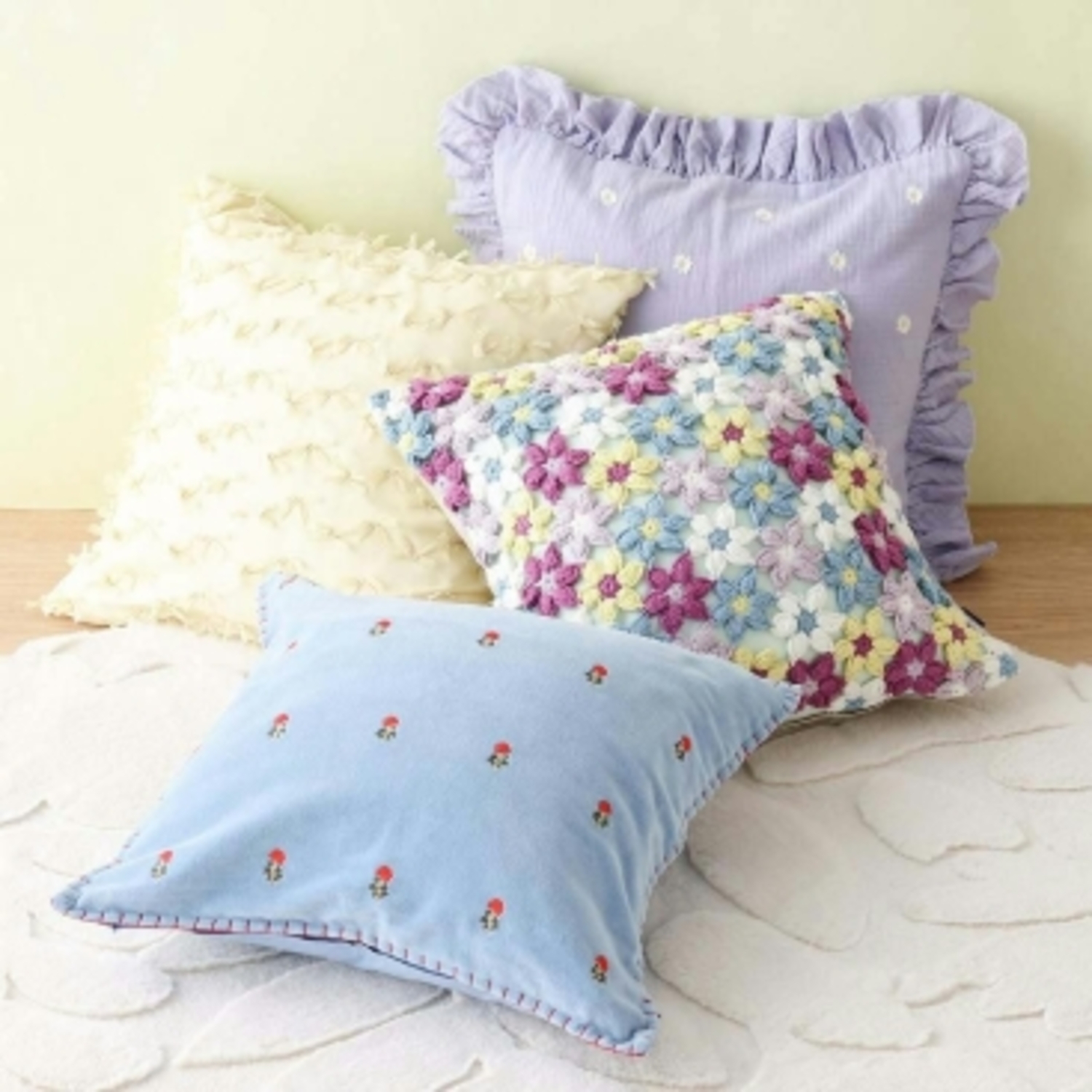 今年のクッションカバーはチュール素材やオーガンジー、レースなど柔らかい素材に明るいカラーを合わせた春らしさ満点のデザインです🪄