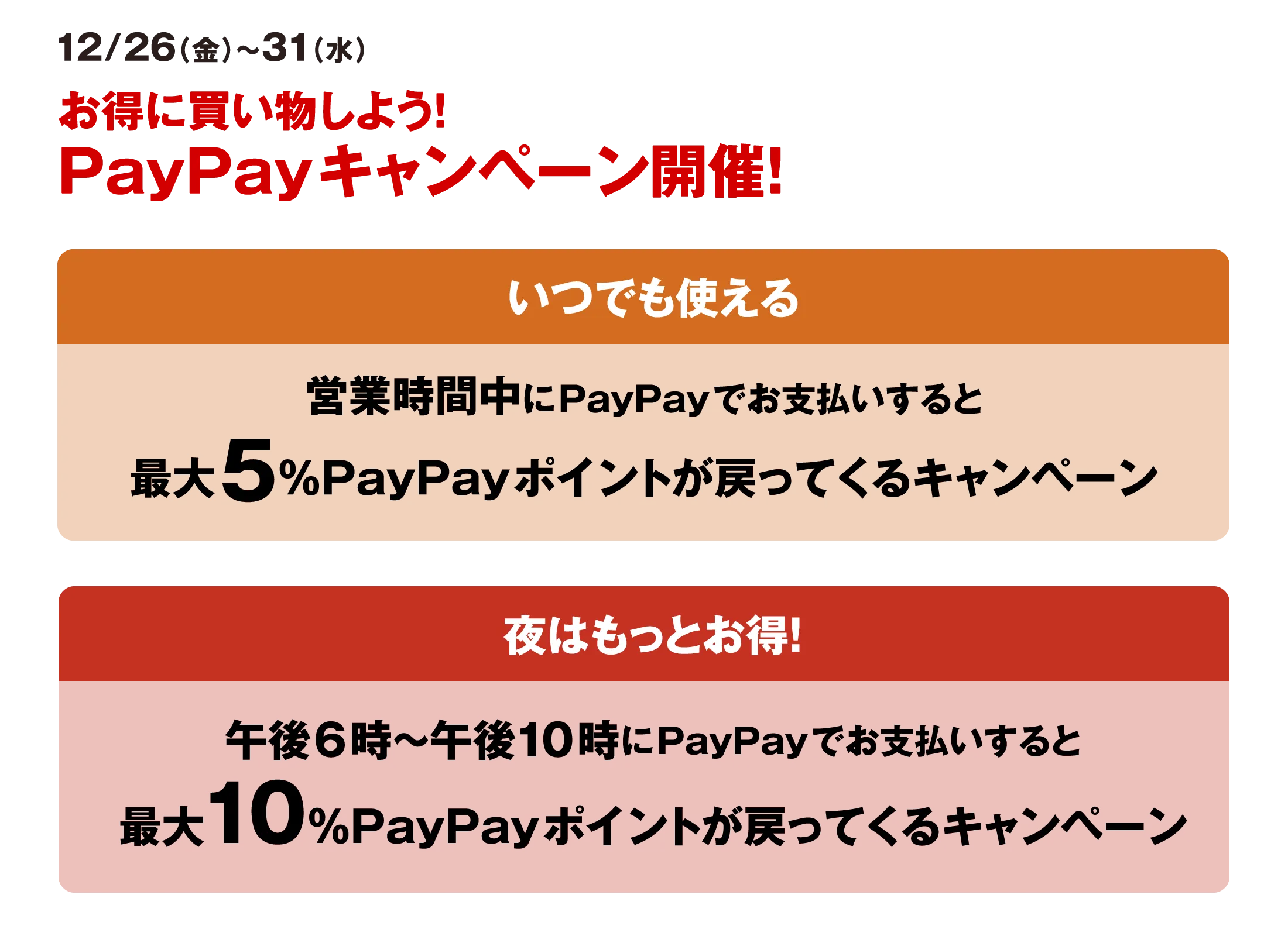 1月1日(木・祝)、全館あさ9時開店!|※12/31(水)は全館10:00~20:00(レストラン街は11:00~20:00)※1/1(木・祝)は全館9:00~20:00(レストラン街は11:00~20:00)※1/2(金)・3(土)は全館10:00~20:00(レストラン街は11:00~20:00)※一部店舗は営業時間が異なります。 ※営業時間は各店ホームページをご確認ください。